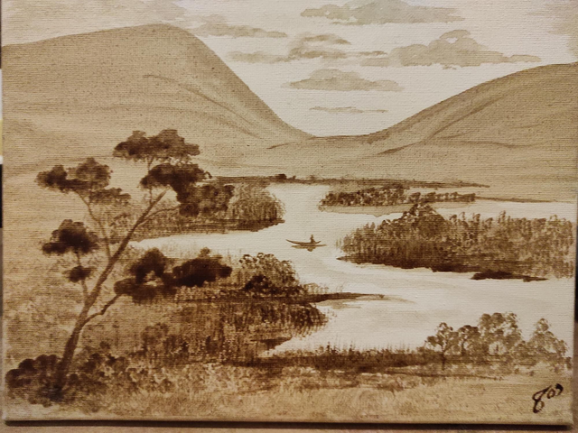 Paysage aquarelle au café